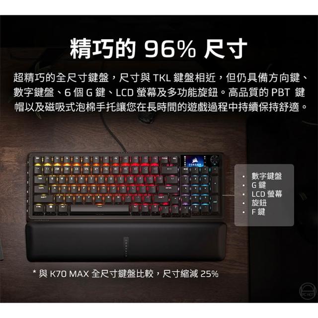 CORSAIR 海盜船Corsair 海盜船 VANGUARD 先鋒者 電競鍵盤 黑色中文 黃軸 8k輪詢率 LCD螢幕 機械鍵盤 有線鍵盤