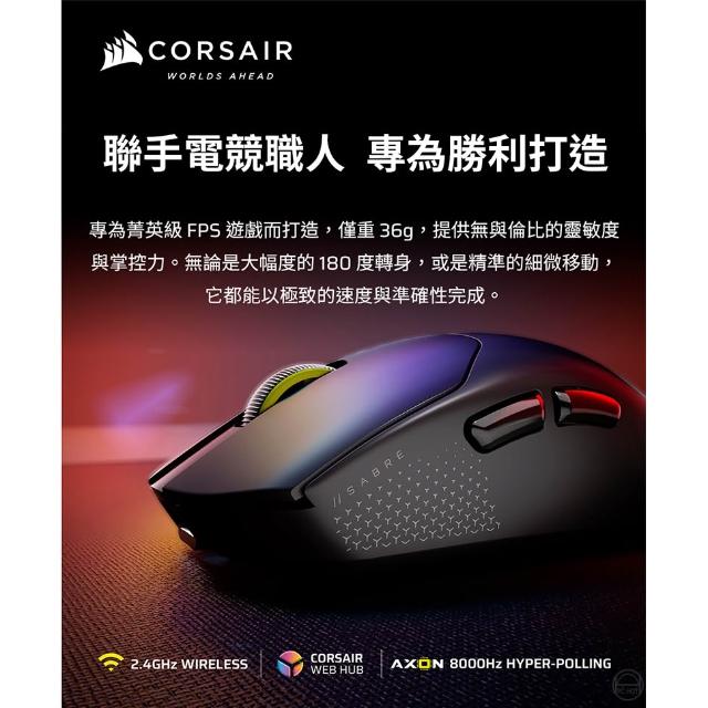 CORSAIR 海盜船Corsair 海盜船 SABRE V2 Pro Ultralight 聖劍 無線滑鼠 黑 雙模連線 電競滑鼠 遊戲滑鼠