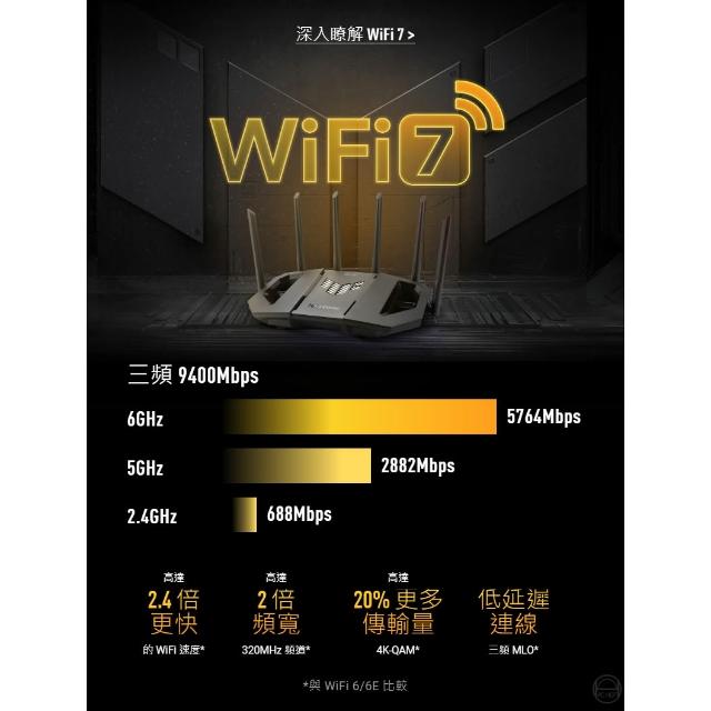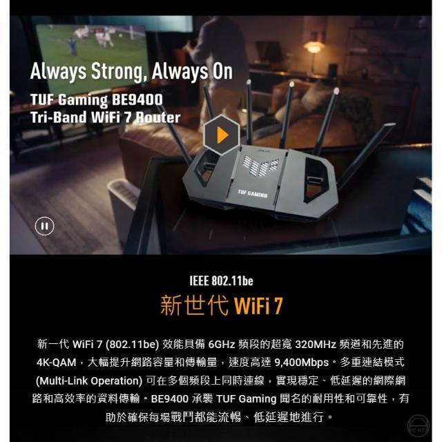 ASUS 華碩ASUS 華碩 TUF Gaming BE9400 無線路由器 WiFi 7 三頻 9400Mbps 路由器 分享器 網