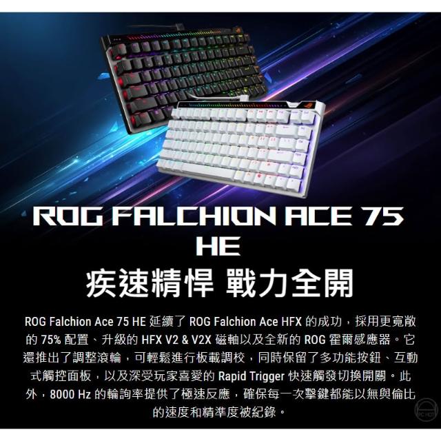 ASUS 華碩ROG Falchion Ace 75 HE 有線電競鍵盤 磁軸 8KHz輪詢率 霍爾感應器 熱插拔 有線鍵盤 電競鍵盤