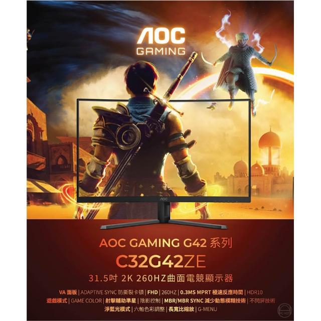 AOCAOC C32G42ZE 曲面電競螢幕 32吋 260Hz FHD 0.3ms VA 電腦螢幕 曲面螢幕 電競螢幕