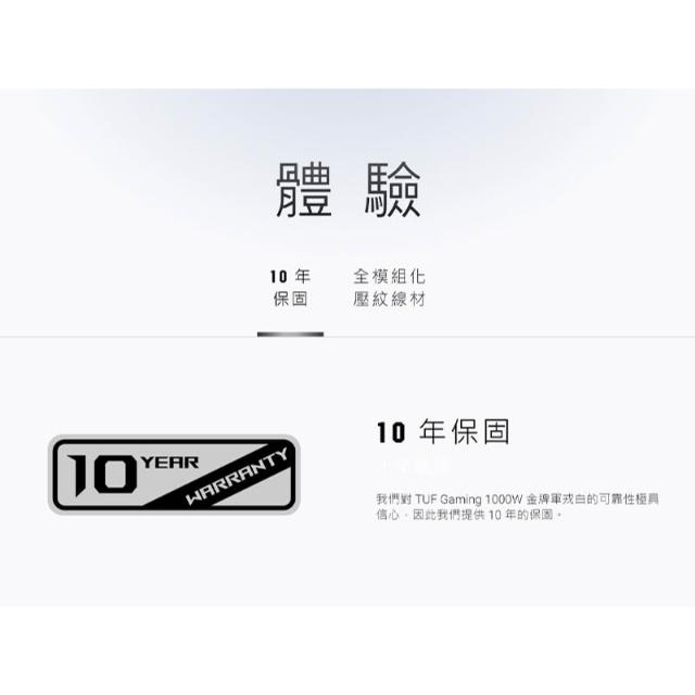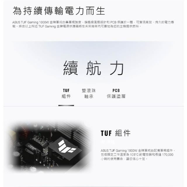 ASUS 華碩TUF Gaming 1000W Gold 電源供應器 軍戎白 80Plus 金牌 ATX 3.0 雙滾珠軸承 全模組