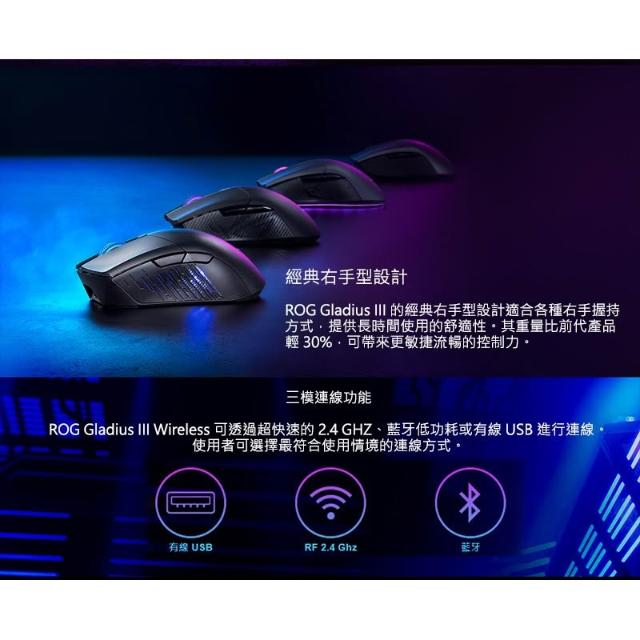 ASUS 華碩ROG GLADIUS 系列 無線電競滑鼠 三模連線 光學感應 巨集 藍芽滑鼠 無線滑鼠 電競滑鼠 遊戲滑鼠 電腦滑鼠