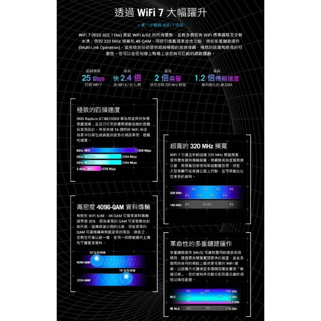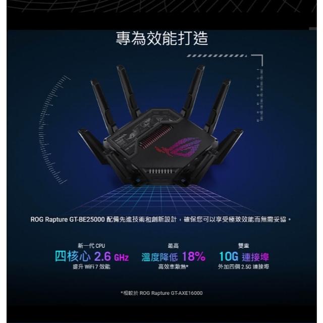 ASUS 華碩ROG Rapture GT-BE25000 路由器 WiFi 7 AiMesh 四頻 Wifi 分享器 網路交換器