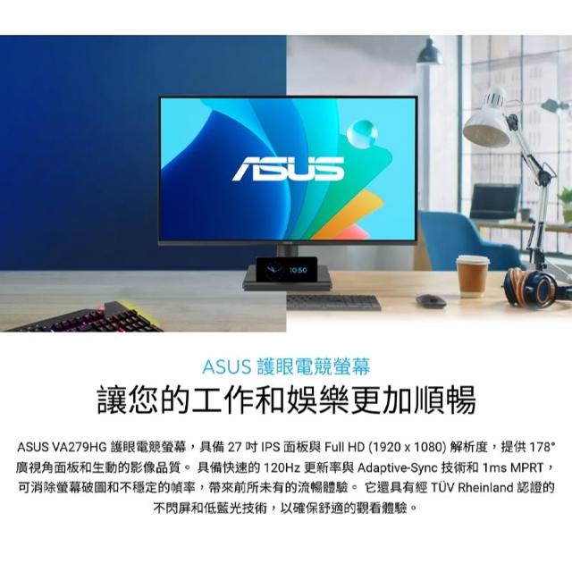 ASUS 華碩ASUS 華碩 VA279HG 護眼電競螢幕 27吋 120Hz IPS FHD 1ms 電腦螢幕 電競螢幕 遊戲螢幕