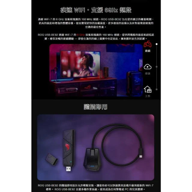 ASUS 華碩ROG USB-BE92 無線網卡 WiFi 7 6GHz 6500Mbps 三頻 wifi 接收器 網路接收器 網卡