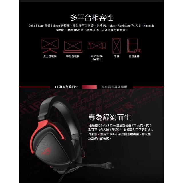 ASUS 華碩ROG Delta S Core 電競耳機 人體工學 環繞音效 高相容性 耳機麥克風 遊戲耳機 電競耳機 有線耳機