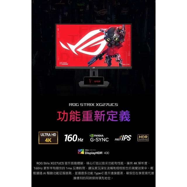 ASUS 華碩ROG Strix XG27UCS 電競螢幕 27吋 160Hz 4K IPS面板 遊戲螢幕 華碩螢幕