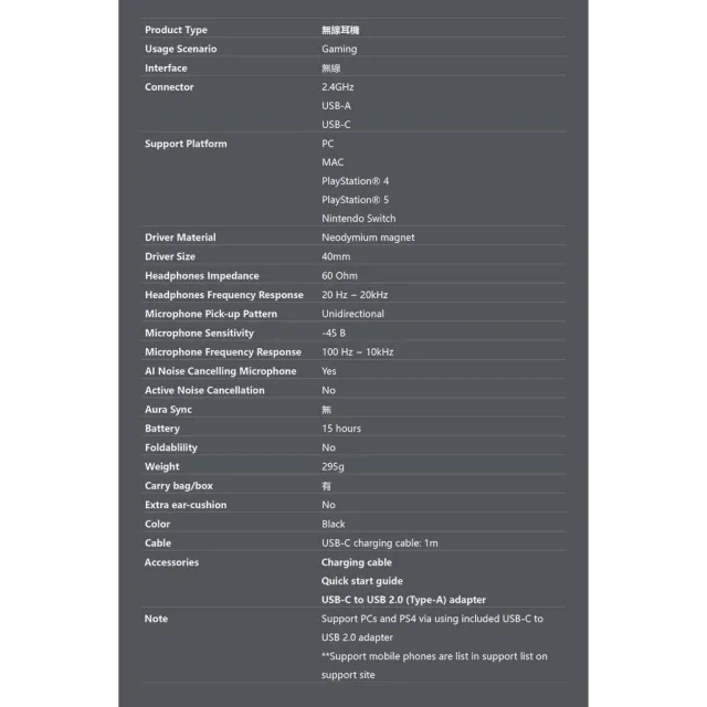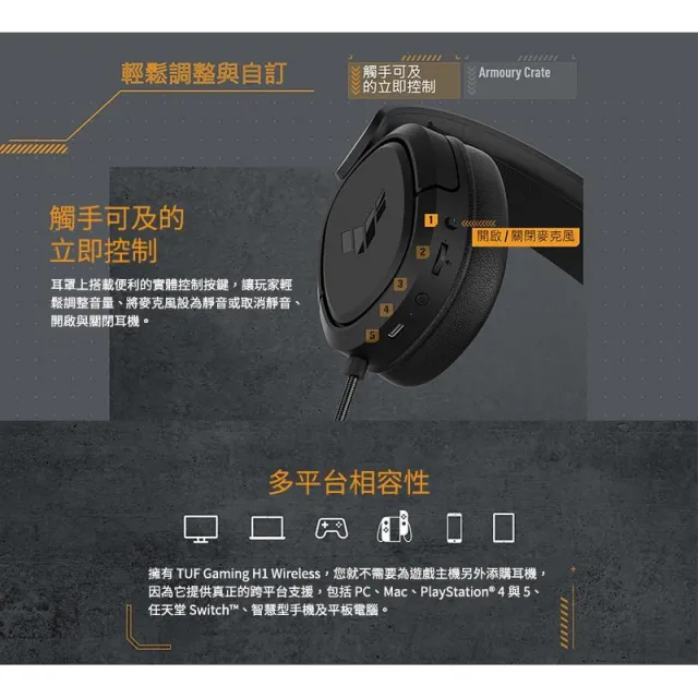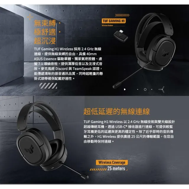ASUS 華碩ASUS 華碩 TUF GAMING H1 Wireless 無線電競耳機 高續航力 輕量設計 耳麥 電競耳機 遊戲耳機