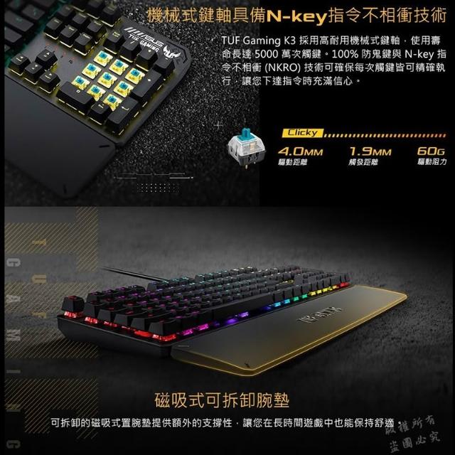 ASUS 華碩ASUS 華碩 TUF Gaming K3 電競鍵盤 RGB 多媒體鍵 巨集鍵盤 電競鍵盤 有線鍵盤 機械鍵盤 華碩鍵盤