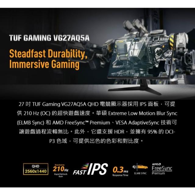 ASUS 華碩ASUS 華碩 TUF Gaming VG27AQ5A 電競螢幕 27吋 210Hz IPS 0.3ms 內建喇叭
