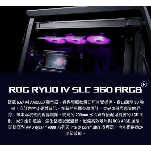 ASUS 華碩ROG RYUO IV SLC 360 ARGB 龍王四代 6.67吋曲面螢幕 磁吸式風扇 低噪音 CPU散熱器 水冷