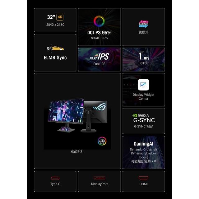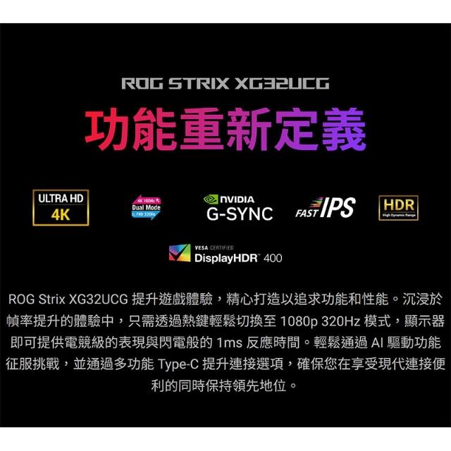 ASUS 華碩ROG Strix XG32UCG 電競螢幕 32吋 160Hz 4K 1ms HDR IPS 電腦螢幕 遊戲螢幕
