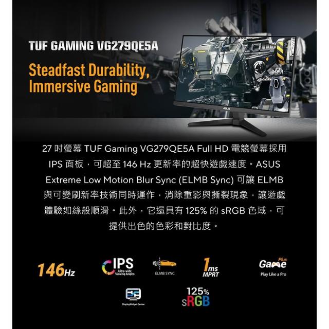 ASUS 華碩ASUS 華碩 TUF Gaming VG279QE5A 電競螢幕 27吋 146Hz FHD 1ms 內建喇叭