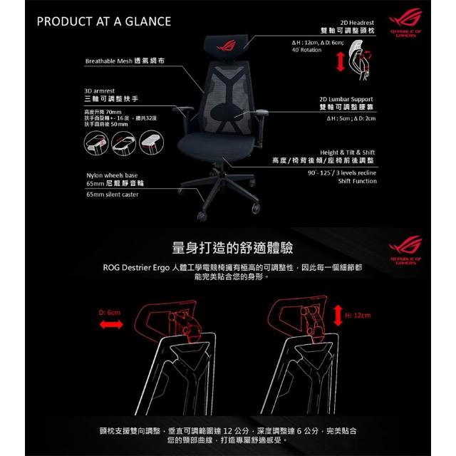 ASUS 華碩ROG SL400C Destrier Lite 電競椅 黑色 三向扶手調節 靜音腳輪 可調式頭枕 透氣網狀椅面 電腦椅