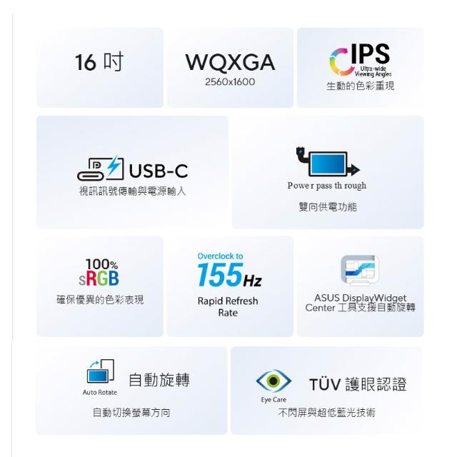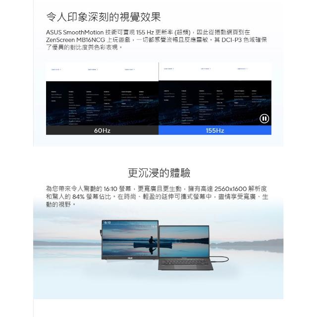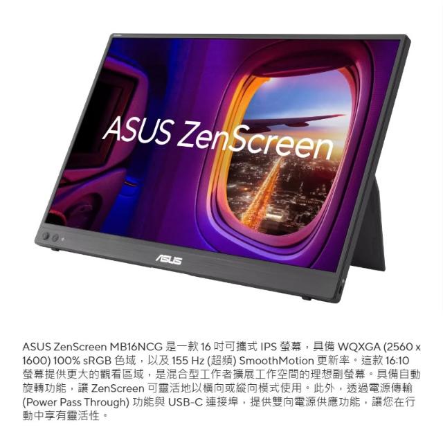 ASUS 華碩ASUS 華碩 ZenScreen MB16NCG 可攜式螢幕 16吋 155Hz 5ms 2K 電腦螢幕 攜帶式螢幕