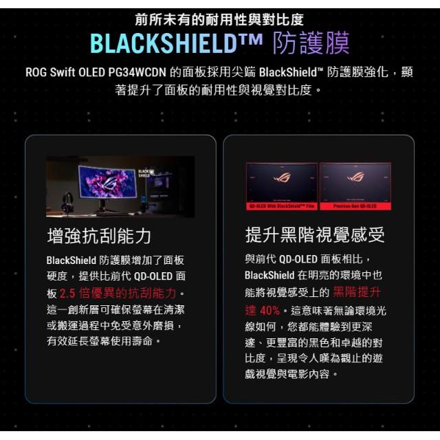 ASUS 華碩ROG Swift OLED PG34WCDN 曲面電競螢幕 34吋 360Hz 2K 0.03ms 電腦螢幕 曲面螢幕