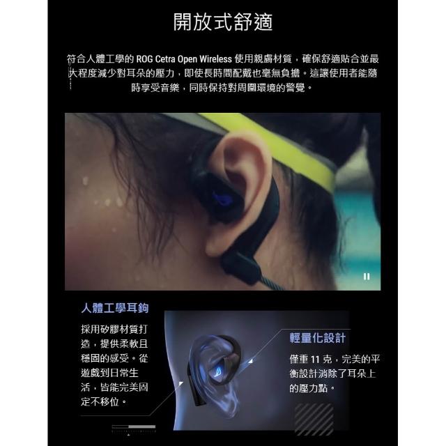 ASUS 華碩ROG Cetra Open Wireless 無線電競耳機 雙模連線 開放式設計 麥克風AI降噪 耳掛式耳機 電競耳機