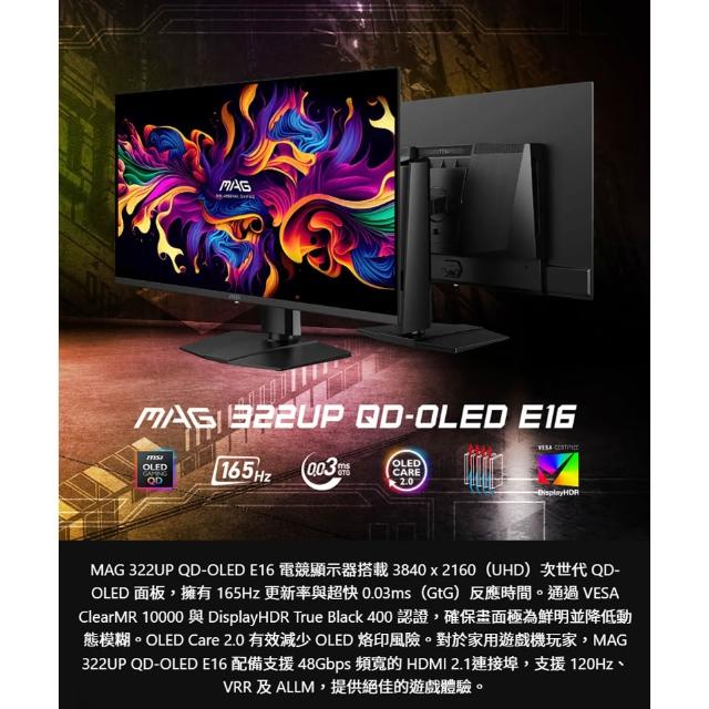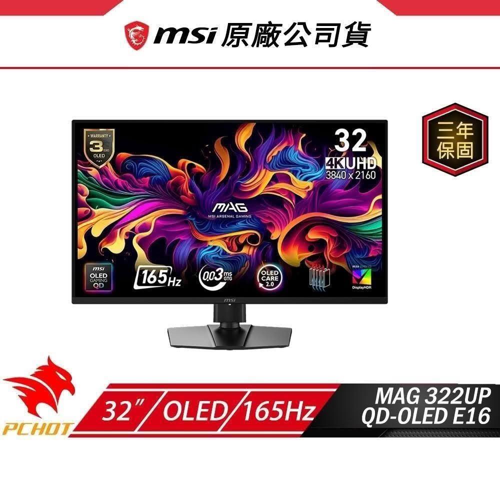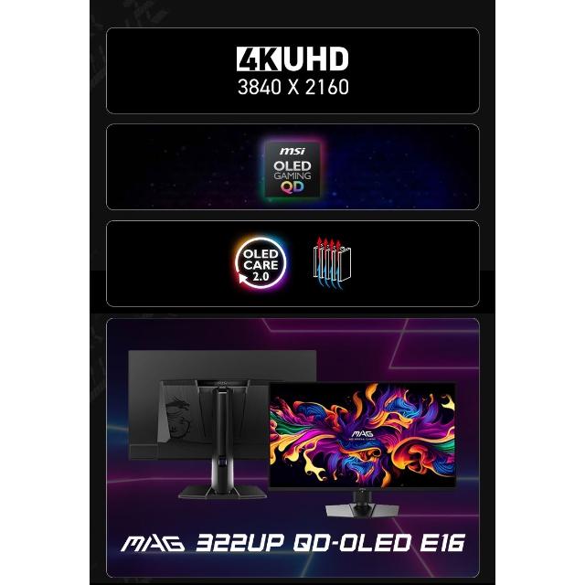 MSI 微星MSI 微星 MAG 322UP QD-OLED E16 電競螢幕 32吋 165Hz 4k 0.03ms HDR