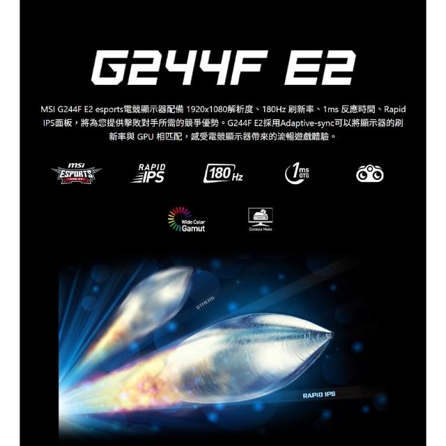 MSI 微星MSI 微星 G244F E2 電競螢幕 24吋 Rapid IPS 180Hz 1ms FHD 液晶螢幕 電腦螢幕