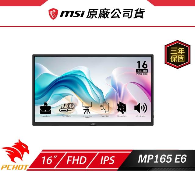MSI 微星MSI 微星 PRO MP165 E6 可攜式螢幕 16吋 60Hz FHD 4ms 內建喇叭 電腦螢幕 遊戲螢幕
