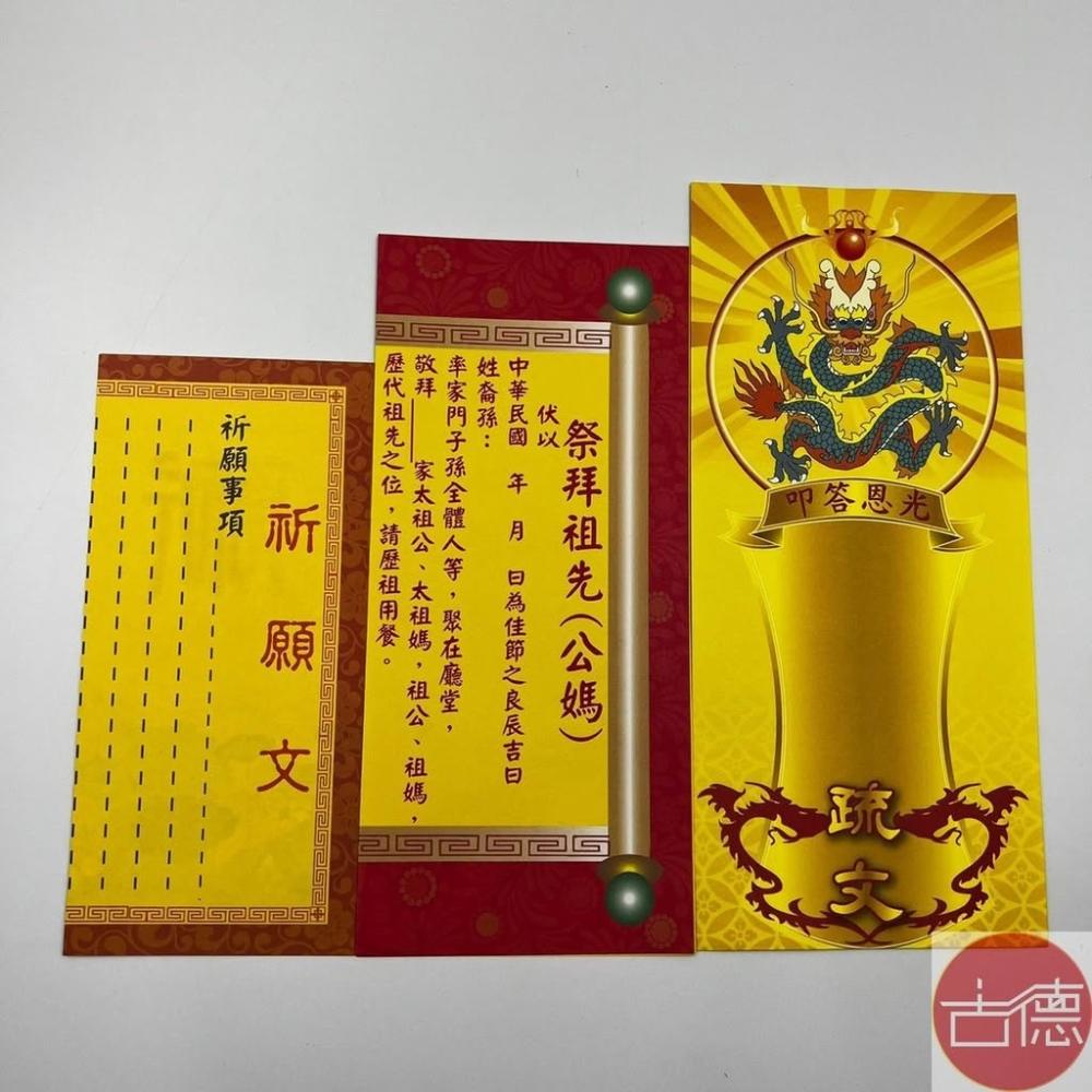 古德金香祭拜祖先(公媽)疏文 / 疏文紙 / 附疏文袋 / 疏文 中元普渡