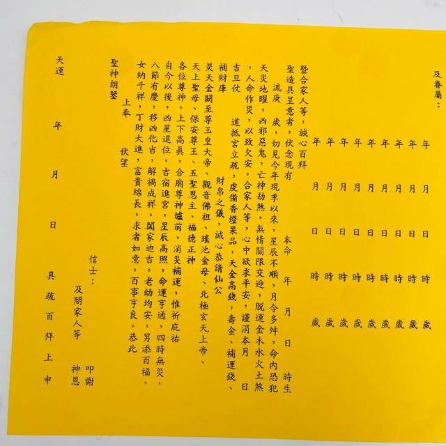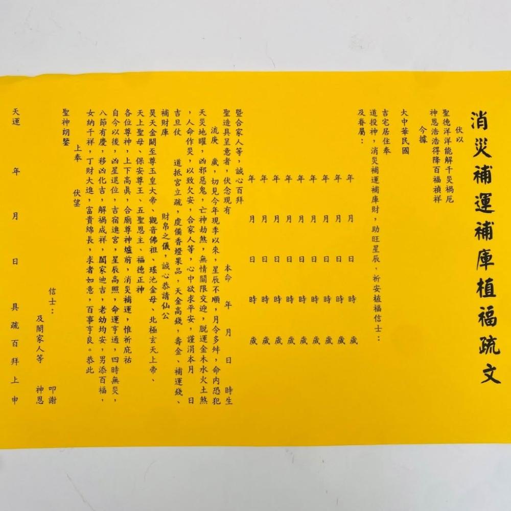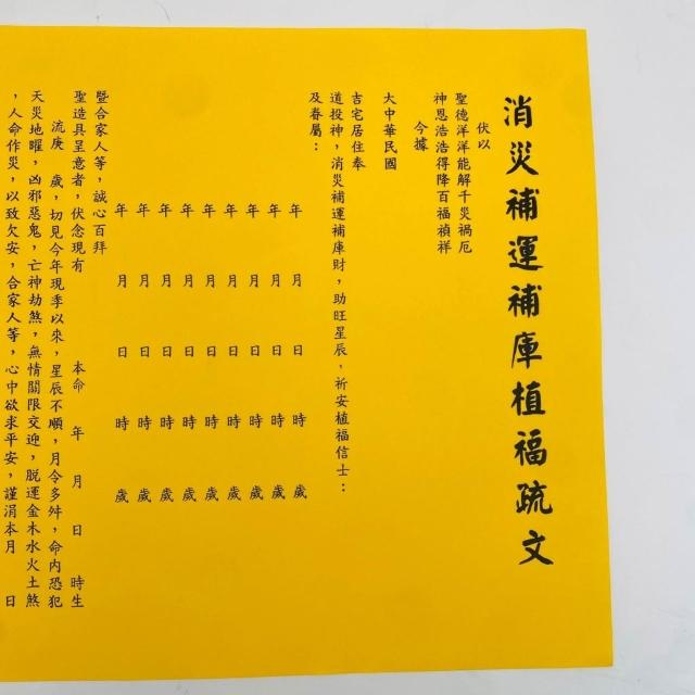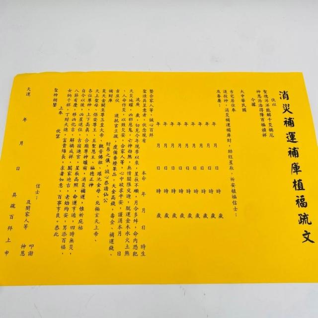 古德金香消災補運補庫植福疏文。疏文、文疏 /祈求消災解厄、增強運勢及積德植福 中元普渡