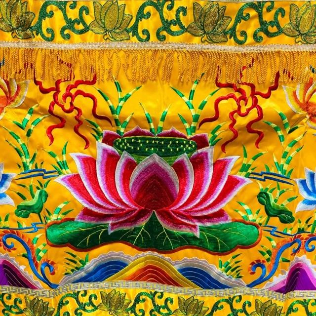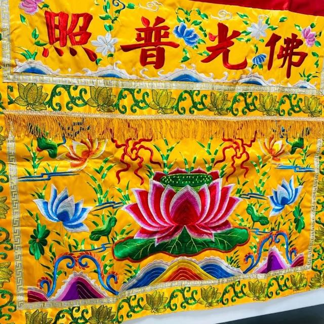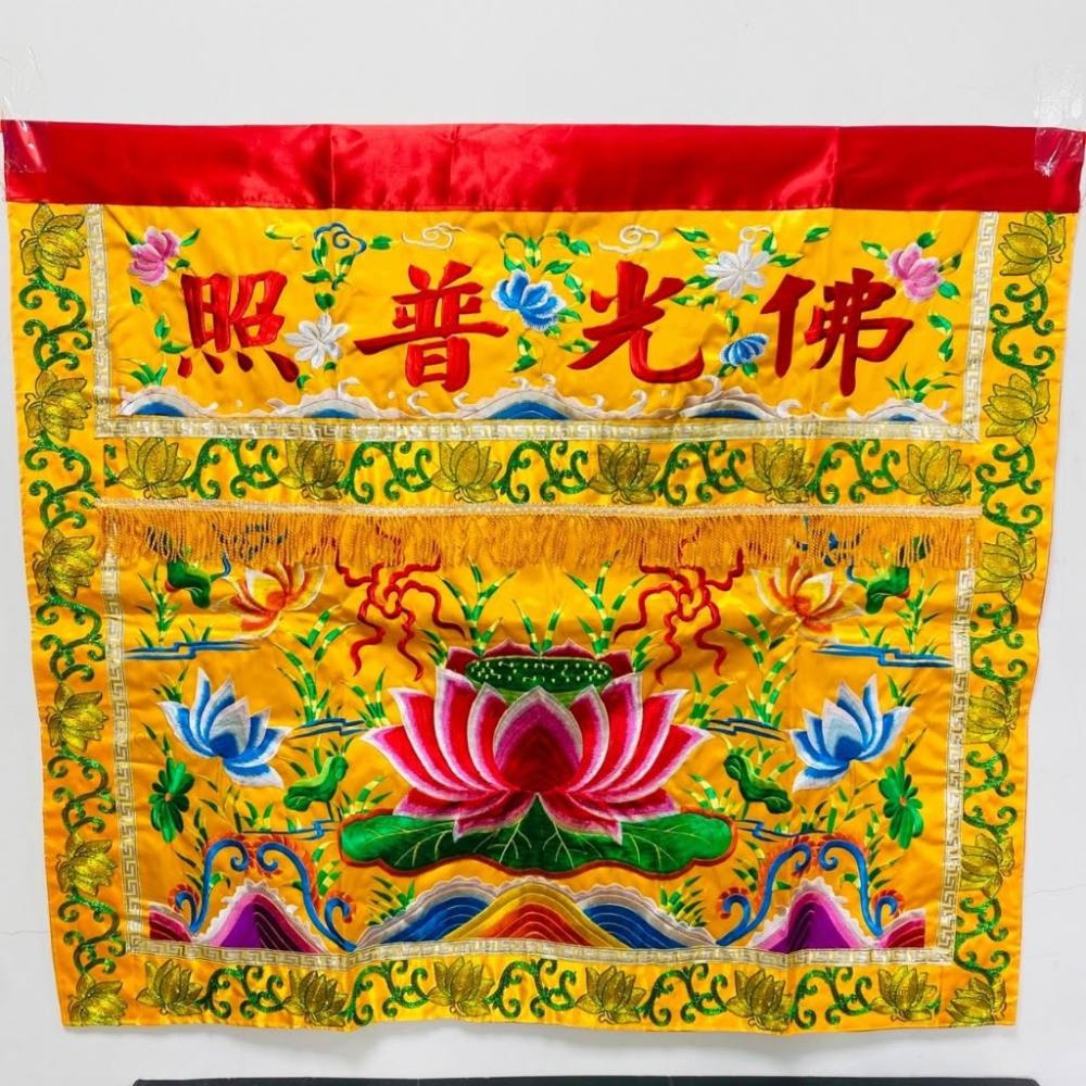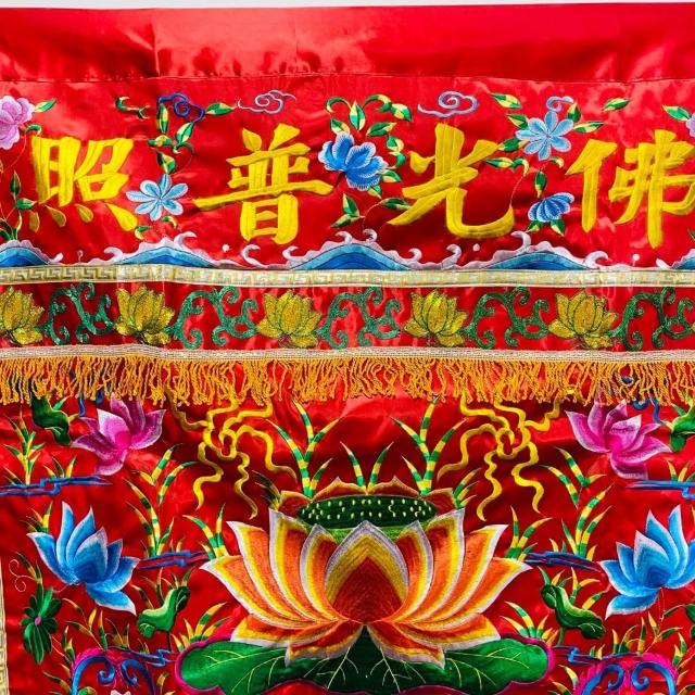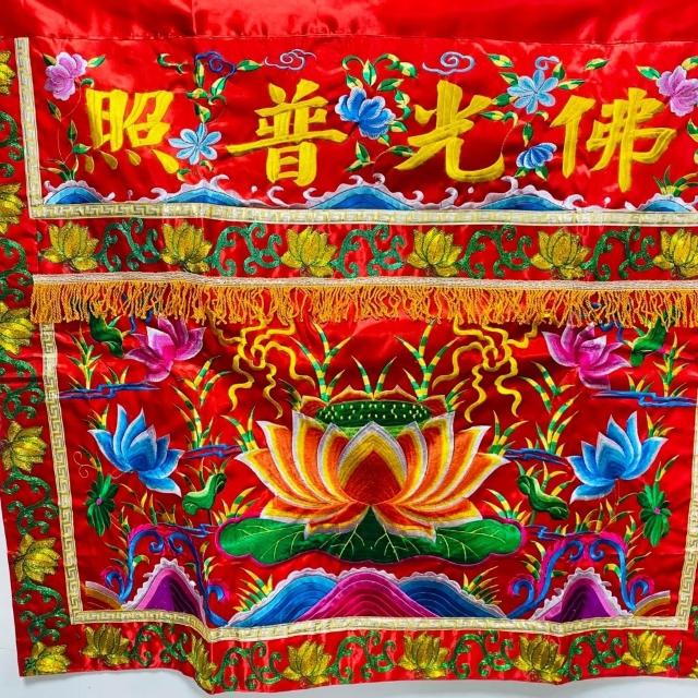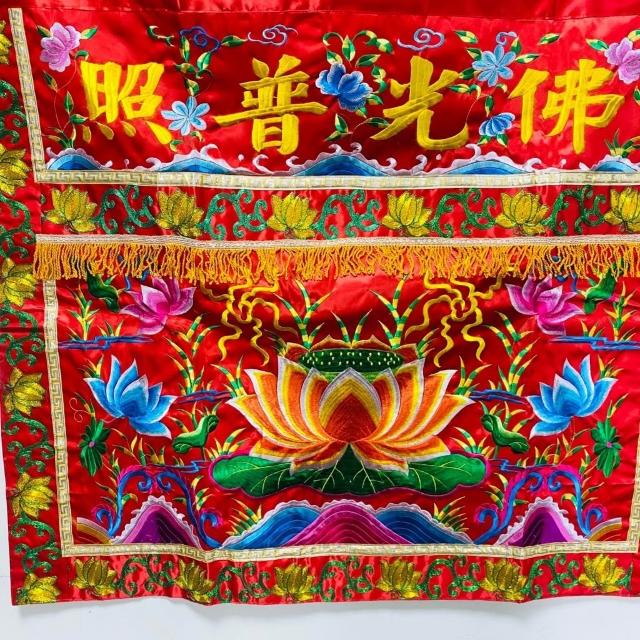 古德金香平繡蓮花桌裙/ 佛光普照桌圍/ 神桌 紅色黃色/ 3尺6 4尺2 中元普渡