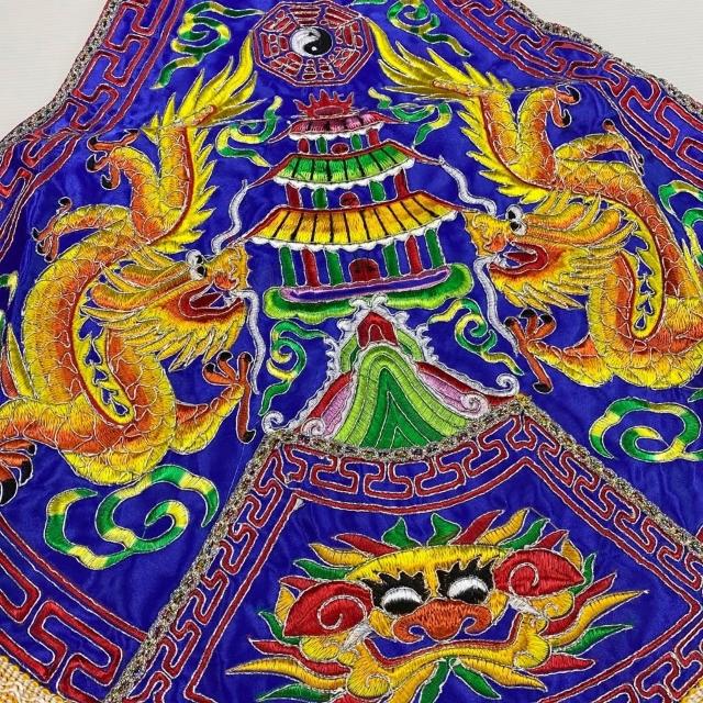 古德金香平繡龍虎裙(肚兜+裙 藍色款) / 八卦肚兜 乩身肚兜 肚圍 雙龍八卦 乩童 降駕 白色龍虎裙 中元普渡