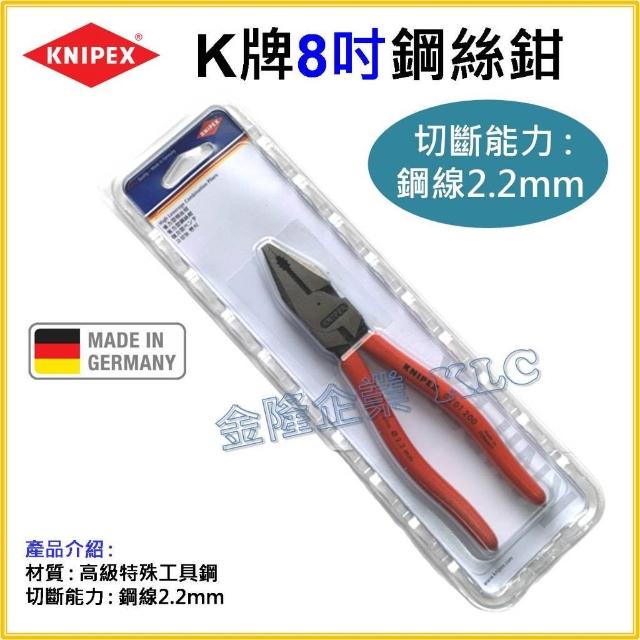 天隆五金 德國製 K牌 KNIPEX 鋼絲鉗 0201225 0201200 K8 K9 7吋 老虎鉗