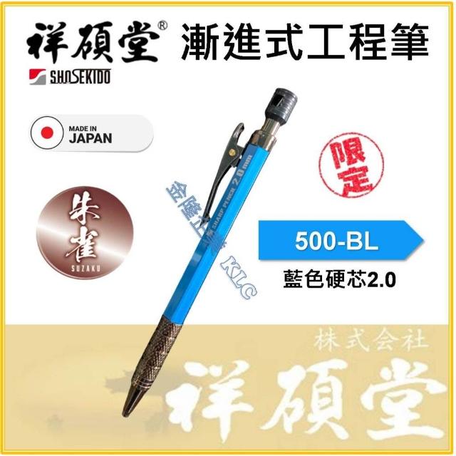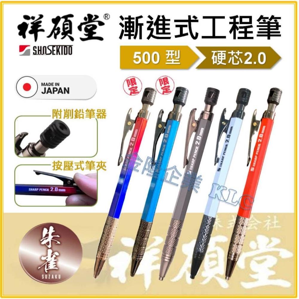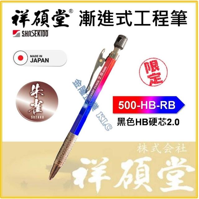 天隆五金 日本製 祥碩堂 500型 新朱雀 漸進式工程筆 按壓式筆夾 附削筆器 硬芯2.0 紅藍 防墜繩