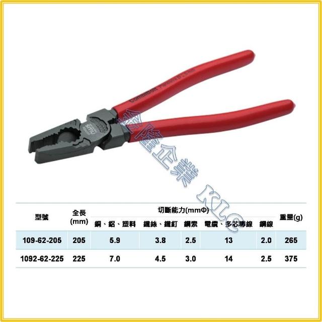 天隆五金 德國製 NWS 8" 9" 多功能強力型鋼絲鉗 老虎鉗 非k牌 109-62-205 225