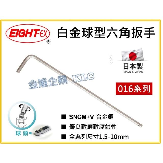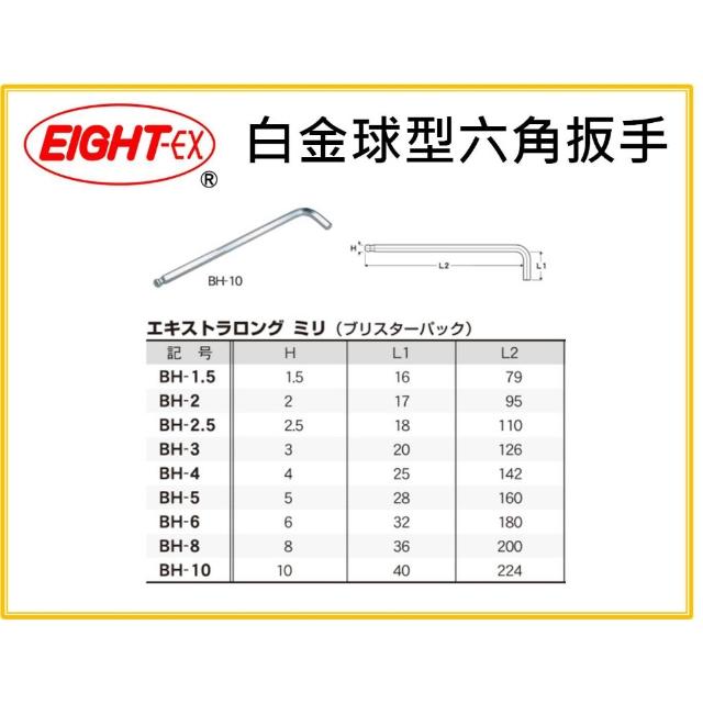 天隆五金 EIGHT 白金球型六角扳手016 BH 1.5、2、2.5、3、4、5、6、8、10 六角板手