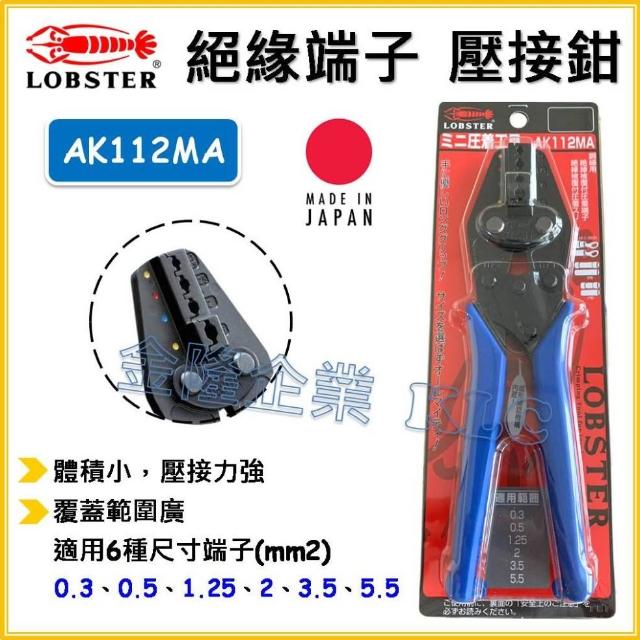 天隆五金 日本製 蝦牌 LOBSTER AK112MA 絕緣端子 壓接鉗 壓軸鉗 壓接端子 雷同MH-155