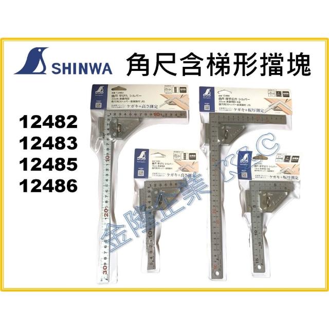 天隆五金 SHINWA 鶴龜 公分角尺 含金屬製 梯形擋塊 12482 12483 12485 12486