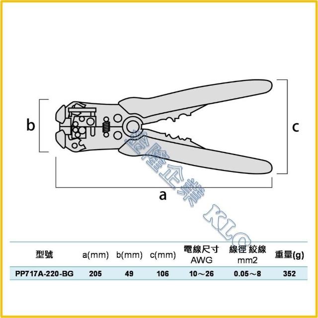 天隆五金 富士箭 FUJIYA 快速剝線鉗 脫皮鉗 PP717A-220-BG 黑金系列 225MM