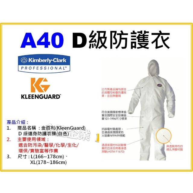天隆五金 金百利 勁衛 A40 D級防護衣 防污染 醫學 化學 生化 環保 農藥噴灑 印刷業