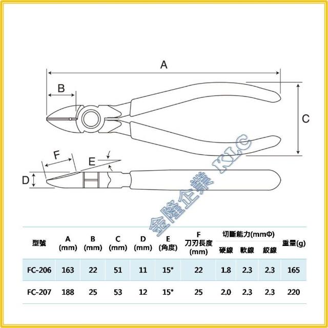 天隆五金 日本 KEIBA 馬牌 FC-206 鉋金 軸心 FC-207 強力斜口鉗 耐用 斜口剪