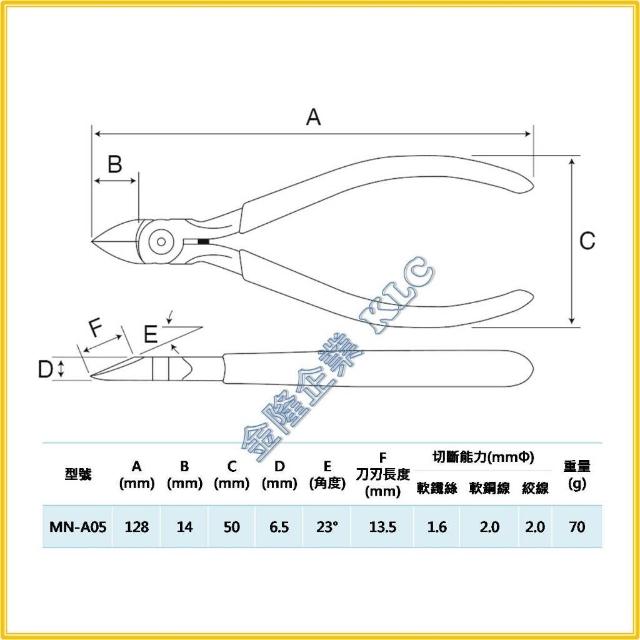 天隆五金 日本 KEIBA 馬牌 MN-A05 電子 斜口鉗