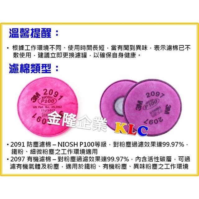 天隆五金 3M 2091 P100 防塵濾棉 過濾粉塵達99.97%