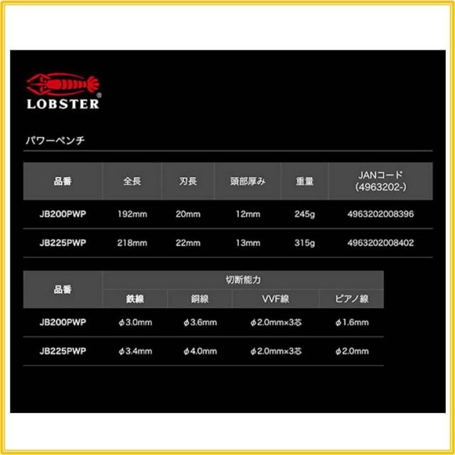 天隆五金 日本製 蝦牌 LOBSTER 黑蝦 JB225PWP CRAFT99 鋼絲鉗 老虎鉗 9吋