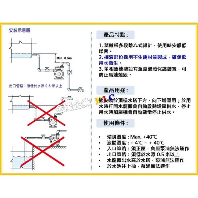 天隆五金 大井 HQC200B 1/4HPx3/4 頂樓順水加壓機 加壓馬達 管內不儲壓 白鐵葉輪