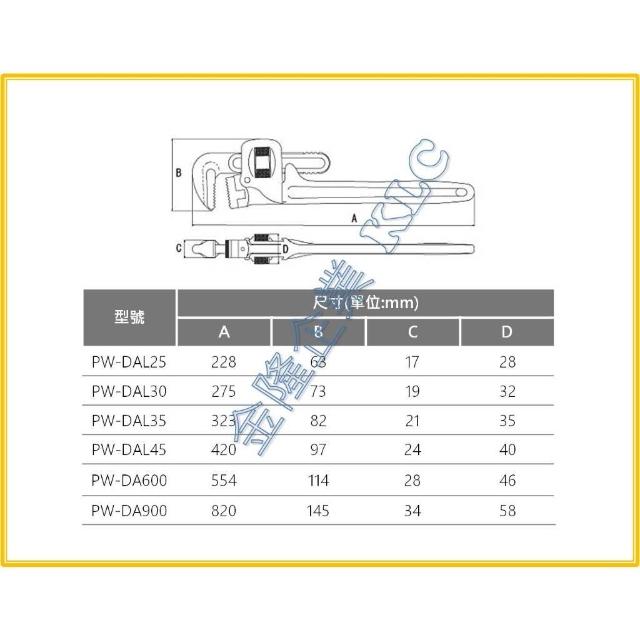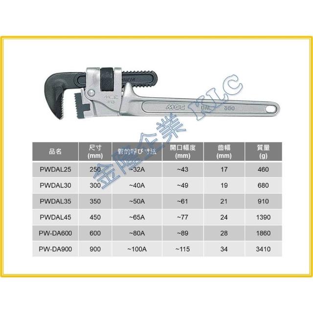 天隆五金 日本製 MCC 鋁柄 管子鉗 PW-DA 鋁合金 管子鉗 管口鉗 水管鉗 管鉗 600 900