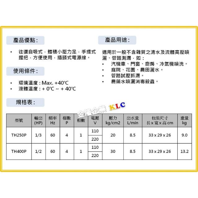 天隆五金大井噴霧機 TH400P 1/2HP 洗車機 清洗機 園藝澆花 清洗愛車 管路試壓測漏