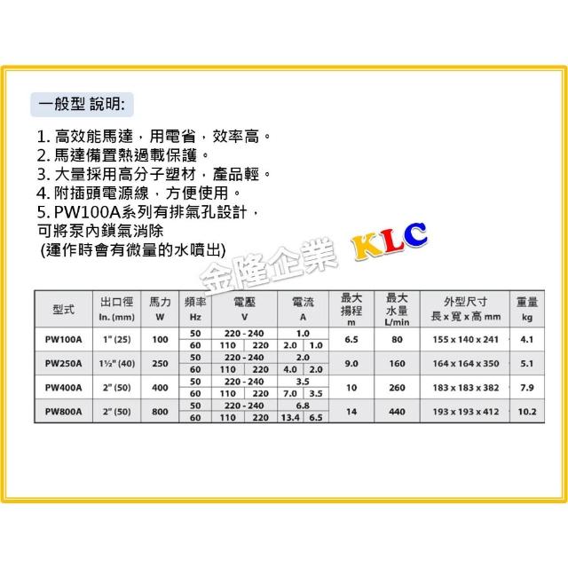 天隆五金 大井 PW800A 出口2吋 沉水泵浦 水龜 沉水幫浦 馬達 清水用