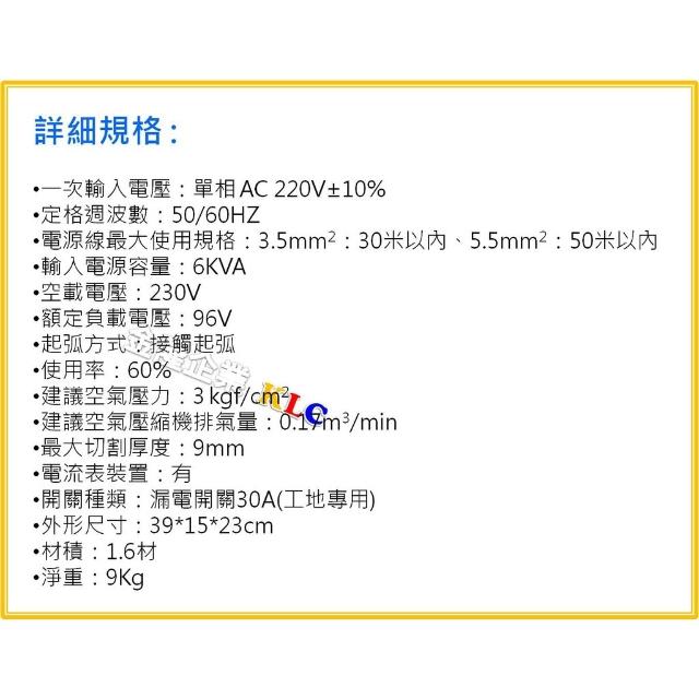 天隆五金贊銘 CUT-40 切割機 電離子切割機 單相AC220 切割厚度9mm