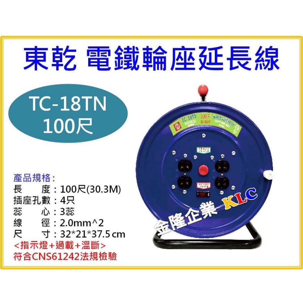 天隆五金東乾 新安規 TC-18TN 100尺(30.3M) 2.0mm 3C 電鐵輪座延長線 電纜捲盤
