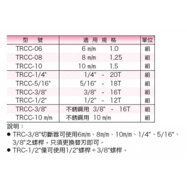天隆五金日本製造 HIT 全牙 螺桿切斷器 替刃 TRCC-1/4 5/16 3/8 1/2 牙條剪 牙板