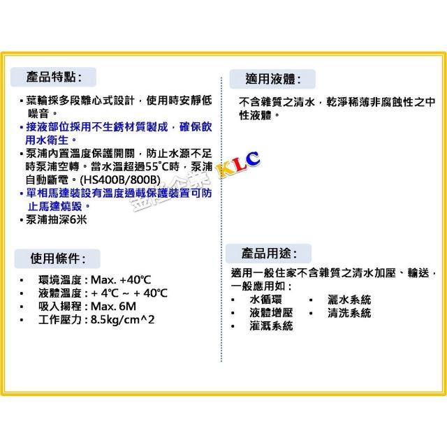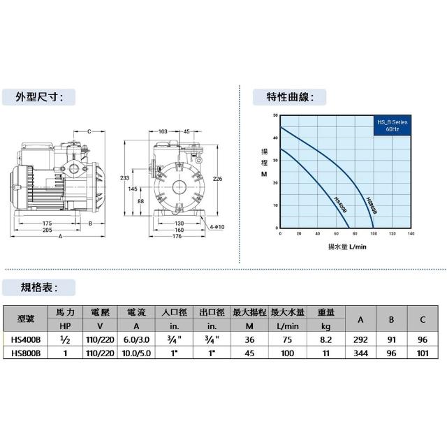 天隆五金 大井 HS800B 1HPx1吋 塑鋼抽水機 不生鏽抽水機 靜音型抽水馬達 HS800 白鐵葉輪