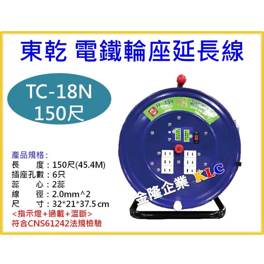 天隆五金東乾 新安規 TC-18N 150尺(45.4M) 2.0mm 2C 電鐵輪座延長線 電纜捲盤